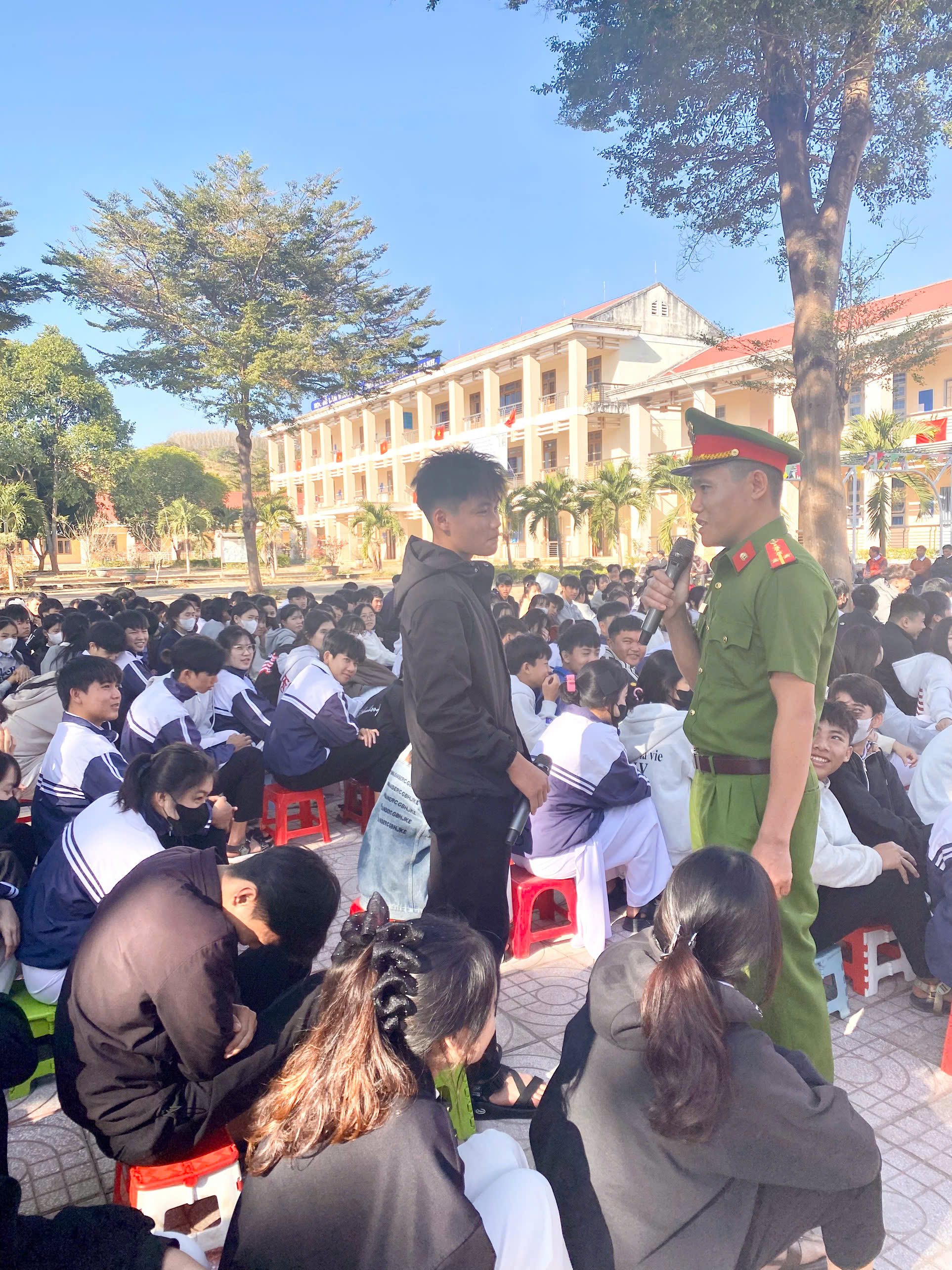 Sáng ngày 26 tháng 01 năm 2026, tại trường THPT Trần Phú-Nam Đà, Công an xã Nam Đà – tỉnh Lâm Đồng đã phối hợp với nhà trường tổ chức buổi phối hợp tuyên truyền giáo dục pháp luật, an toàn học đường cho toàn thể cán bộ, giáo viên và học sinh. Chương trình nhằm trang bị kiến thức pháp luật, kỹ năng phòng ngừa rủi ro và nâng cao ý thức tự bảo vệ bản thân cho học sinh trong môi trường học đường hiện nay.