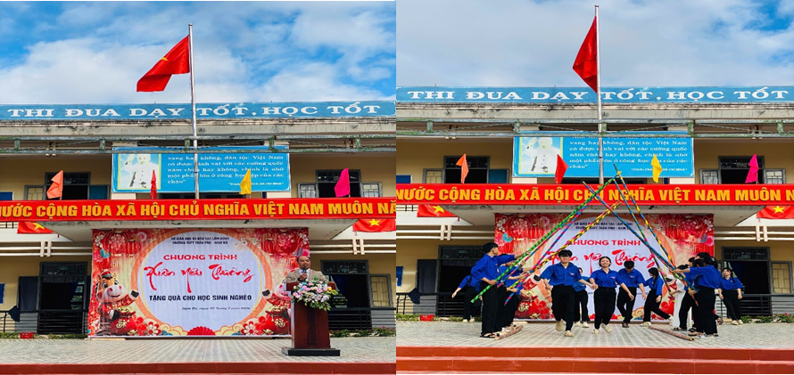 Chương trình mở đầu bằng tiết mục văn nghệ chào mừng rộn ràng, tươi vui, do chính các em học sinh của nhà trường biểu diễn. Những giai điệu mùa xuân ngân vang, những lời ca ấm áp đã làm không khí buổi lễ thêm rộn ràng, lan tỏa niềm vui, sự phấn khởi và hơi ấm của mùa Tết đang đến gần.